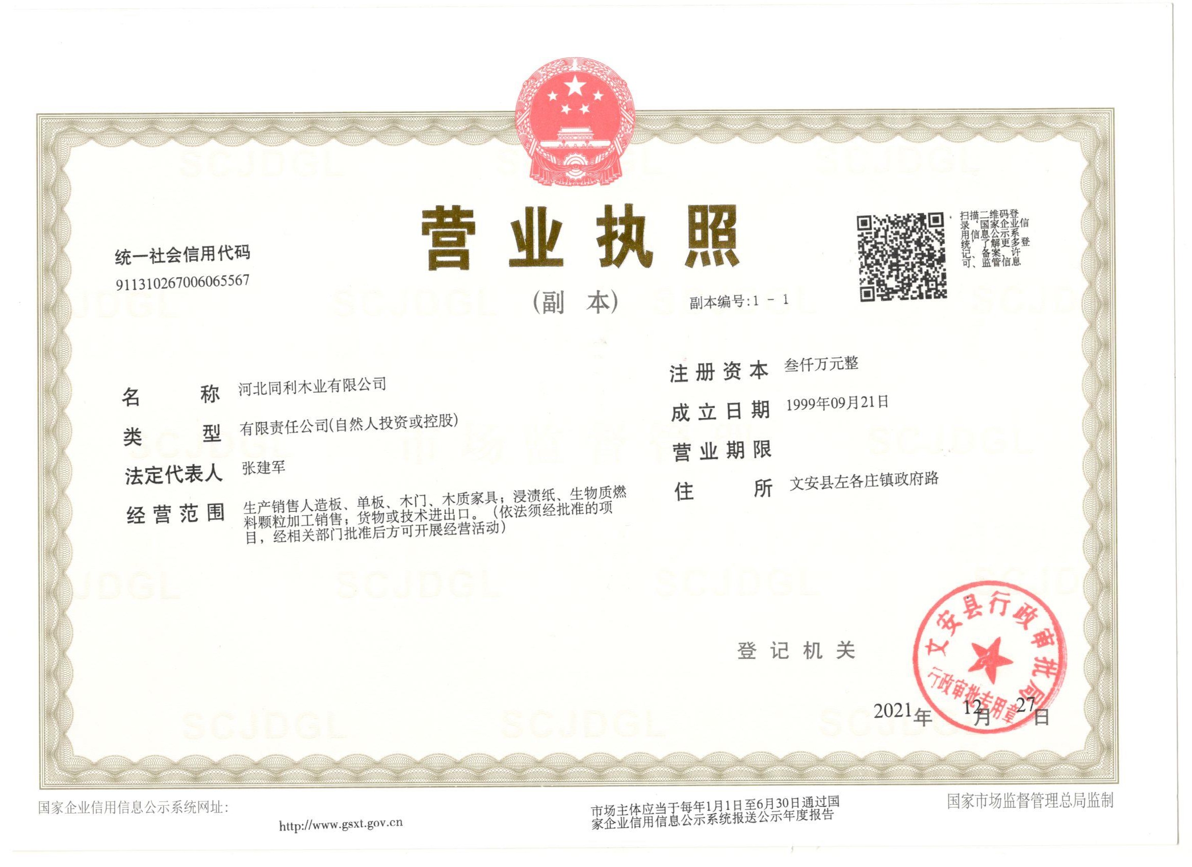 同利集團始創于1984年,是中國北方的膠合板生產廠家。經過三十多年的發展,已逐步形成涵蓋板材相關行業,并涉足房地產、貿易、文化等領域的多元化,集團化公司。公司占地面積600多畝,建筑面積110000平方米。現有員工650余人,其中管理人員本科以上占20%,大專以上占35%,中專以上占45%。